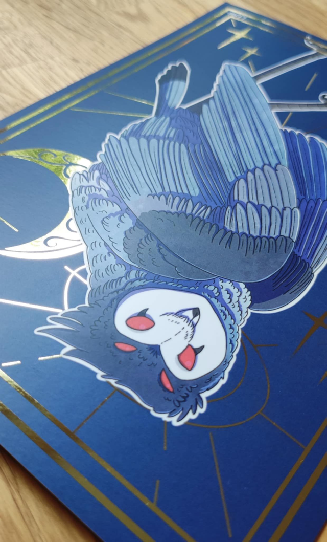 Papier couché mat 300 g avec Finition pelliculage mat + dorure numérique or